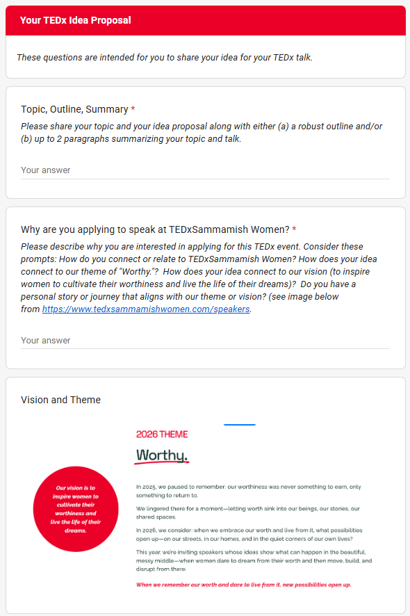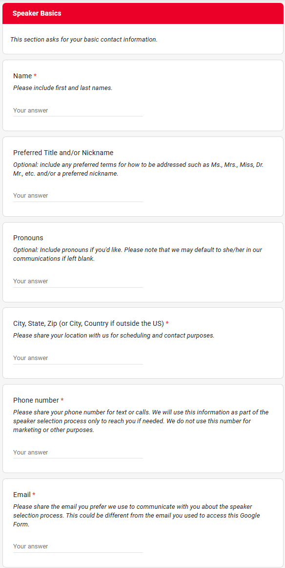 To apply to be a speaker, you must complete the Google Form at this link below (when available 3/23-4/6/26).